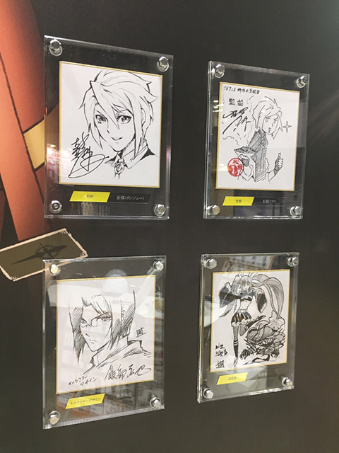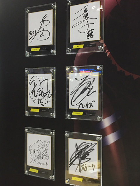 福山潤さん(ヴィクト役)、石川界人さん(霧役)、釘宮理恵さん(ミーナ役)、赤羽根健治さん(ブレイズ役)、伊藤静さん(アイスレーダー役)、杉田智和さん(スネーク役)、彭傑さん(原作)、松根マサトさん(監督)、写楽斎さん(助監督)、飯島弘也さん(キャラクターデザイン)のサイン色紙を展示します。